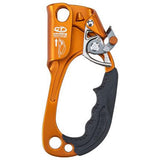 Left or right-hand light alloy ascender handle with ergonomic rubber grip for climbing ropes.